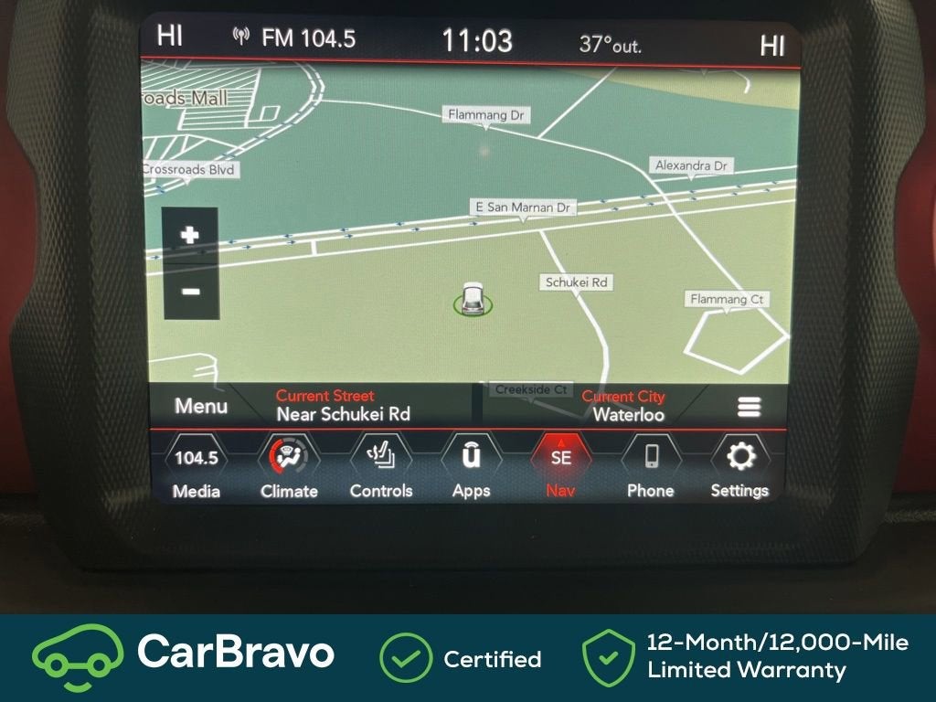 Certified. Yes Certified, 4-Wheel Disc Brakes, 4.10 Rear Axle Ratio, 9 Speakers, 97 MPH Vehicle Max Speed Calibration, ABS brakes, Air Conditioning, Alloy wheels, AM/FM radio: SiriusXM, Apple CarPlay/Android Auto, Auto-dimming Rear-View mirror, Automatic temperature control, Black 3-Piece Hard Top, Bluetooth® Wireless Speaker, Brake assist, Cold Weather Group, Compass, Corning Gorilla Glass, Delay-off headlights, Driver door bin, Driver vanity mirror, Dual front impact airbags, Dual front side impact airbags, Electronic Stability Control, Emergency communication system: SiriusXM Guardian, Freedom Panel Storage Bag, Front anti-roll bar, Front Bucket Seats, Front Center Armrest w/Storage, Front dual zone A/C, Front fog lights, Front License Plate Bracket, Front reading lights, Fully automatic headlights, Garage door transmitter, Heated door mirrors, Heated Front Seats, Heated Steering Wheel, Illuminated entry, Integrated roll-over protection, Leather steering wheel, Low tire pressure warning, MOPAR All-Weather Slush Mats, Navigation System, Occupant sensing airbag, Outside temperature display, Panic alarm, ParkView Rear Back-Up Camera, Passenger door bin, Passenger vanity mirror, Performance Suspension, Power door mirrors, Power steering, Power windows, Premium Cloth Low-Back Bucket Seats, Quick Order Package 24R, Radio data system, Radio: Uconnect 4C Nav w/8.4 Display, Rear anti-roll bar, Rear reading lights, Rear Sliding Window, Rear Window Defroster, Remote keyless entry, Remote Start System, Security system, Speed control, Split folding rear seat, Steering wheel mounted audio controls, Tachometer, Telescoping steering wheel, Tilt steering wheel, Traction control, Trip computer, Variably intermittent wipers, Voltmeter, Wheels: 17 x 7.5 Granite Crystal Aluminum. Bright White Clearcoat 2022 Jeep Gladiator Rubicon 4WD 8-Speed Automatic 3.6L V6 24V VVT