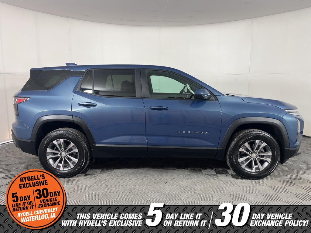 Clean CARFAX. CARFAX One-Owner. 26/28 City/Highway MPG One Owner, Apple CarPlay, Android Auto, 4-Wheel Disc Brakes, 5.81 Final Drive Axle Ratio, 6 Speakers, ABS brakes, Air Conditioning, All-Weather Floor Liners (LPO), Alloy wheels, AM/FM radio: SiriusXM, Auto High-beam Headlights, Brake assist, Bumpers: body-color, Cargo Mat, Cloth Seat Trim, Compass, Delay-off headlights, Driver 6-Way Manual Seat Adjuster, Driver door bin, Driver vanity mirror, Dual front impact airbags, Dual front side impact airbags, Electronic Stability Control, Emergency communication system: OnStar and Chevrolet connected services capable, Floor Liner Package (LPO), Four wheel independent suspension, Front anti-roll bar, Front Bucket Seats, Front Center Armrest, Front Passenger 4-Way Manual Seat Adjuster, Front reading lights, Fully automatic headlights, Heated door mirrors, Heated Driver & Front Passenger Seats, Heated front seats, Heated steering wheel, Illuminated entry, Low tire pressure warning, Navigation System, Occupant sensing airbag, Outside temperature display, Overhead airbag, Overhead console, Panic alarm, Passenger door bin, Passenger vanity mirror, Power door mirrors, Power steering, Power windows, Preferred Equipment Group 1LT, Premium audio system: Chevrolet Infotainment 3, Radio data system, Radio: 11.3 Diagonal Advanced Color LCD Display, Rear anti-roll bar, Rear reading lights, Rear seat center armrest, Rear window defroster, Rear window wiper, Remote keyless entry, Second Row All-Weather Mat (LPO), Security system, SiriusXM, Speed control, Speed-sensing steering, Split folding rear seat, Spoiler, Steering wheel mounted audio controls, Tachometer, Telescoping steering wheel, Tilt steering wheel, Traction control, Trip computer, Variably intermittent wipers, Wheels: 17 Grazen Metallic Machined-Face Aluminum. Lakeshore Blue Metallic 2025 Chevrolet Equinox LT FWD CVT 1.5L DOHC